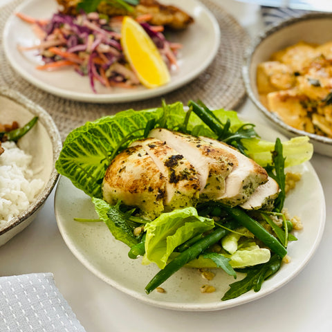 We received a number of compliments on the Herb chicken with Green Barley Salad this week... how good was it!? It made me reflect on what makes a fresh dish like that so wonderful and I think apart of premium quality ingredients it's the fresh herbs, like pops of mint in the salad. It's our signature... don't you think? We LOVE to use fresh mint, rosemary, coriander, chives, dill... whatever we can get our hands on to make the dish pop. I get quite excited about it!