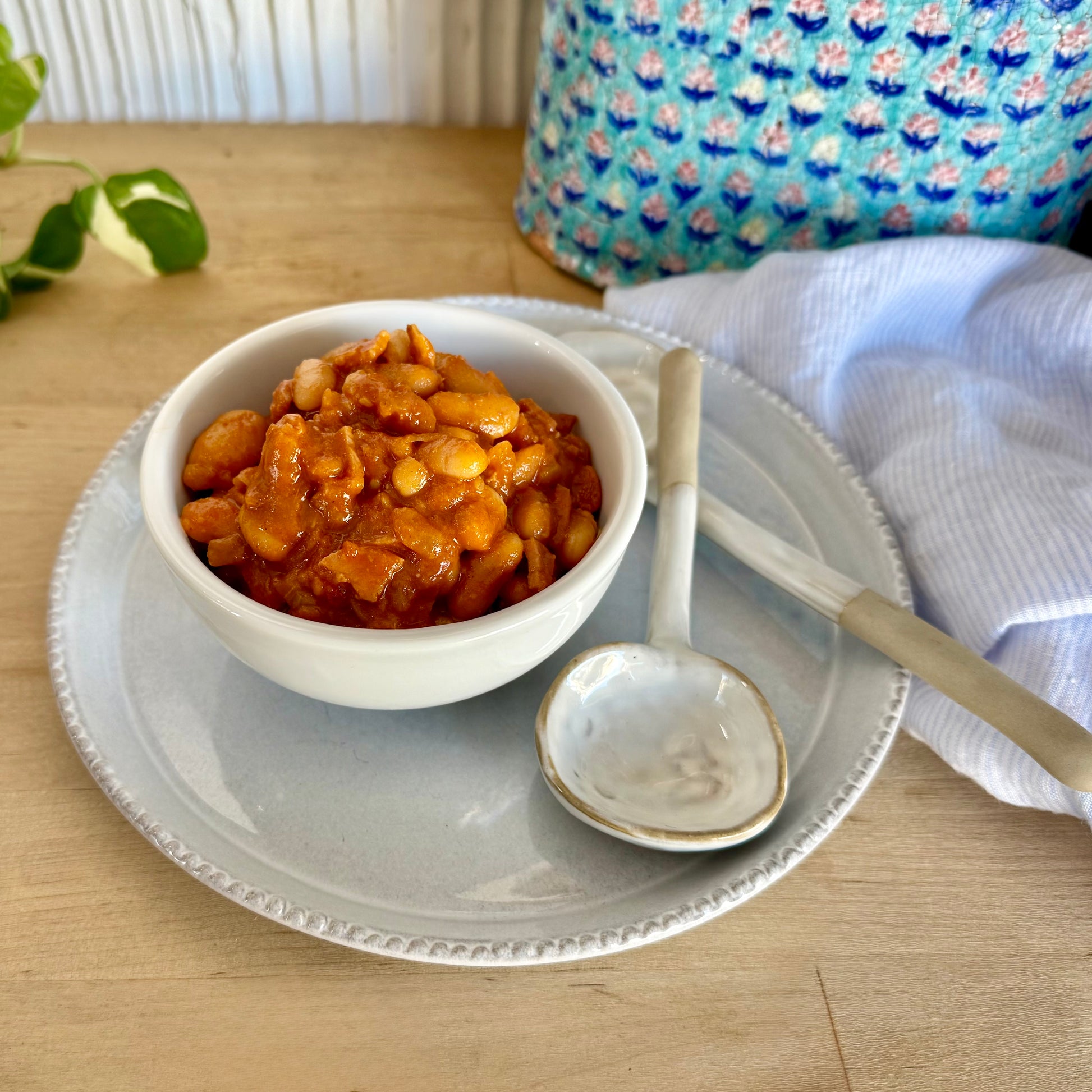 Cannellini Beans, Butter Beans, Bacon, Tomato, Tomato Paste (Concentrated Tomato 98%, salt), Brown Sugar, Water, Garlic, Olive Oil, Worcestershire Sauce (Water, Malt Vinegar [Barley, Wheat], Molasses, Golden Syrup, Cured Anchovy (Fish), Salt, Tamarind, Spices, Colour [150c], Onion, Garlic, Natural Flavour), Butter (Cream, [Milk], Water, Salt) Smoked Paprika, Salt, Cumin, Pepper, Onion.